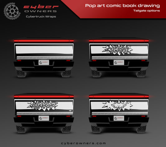 Pop art comic book drawing Cybertruck wrap