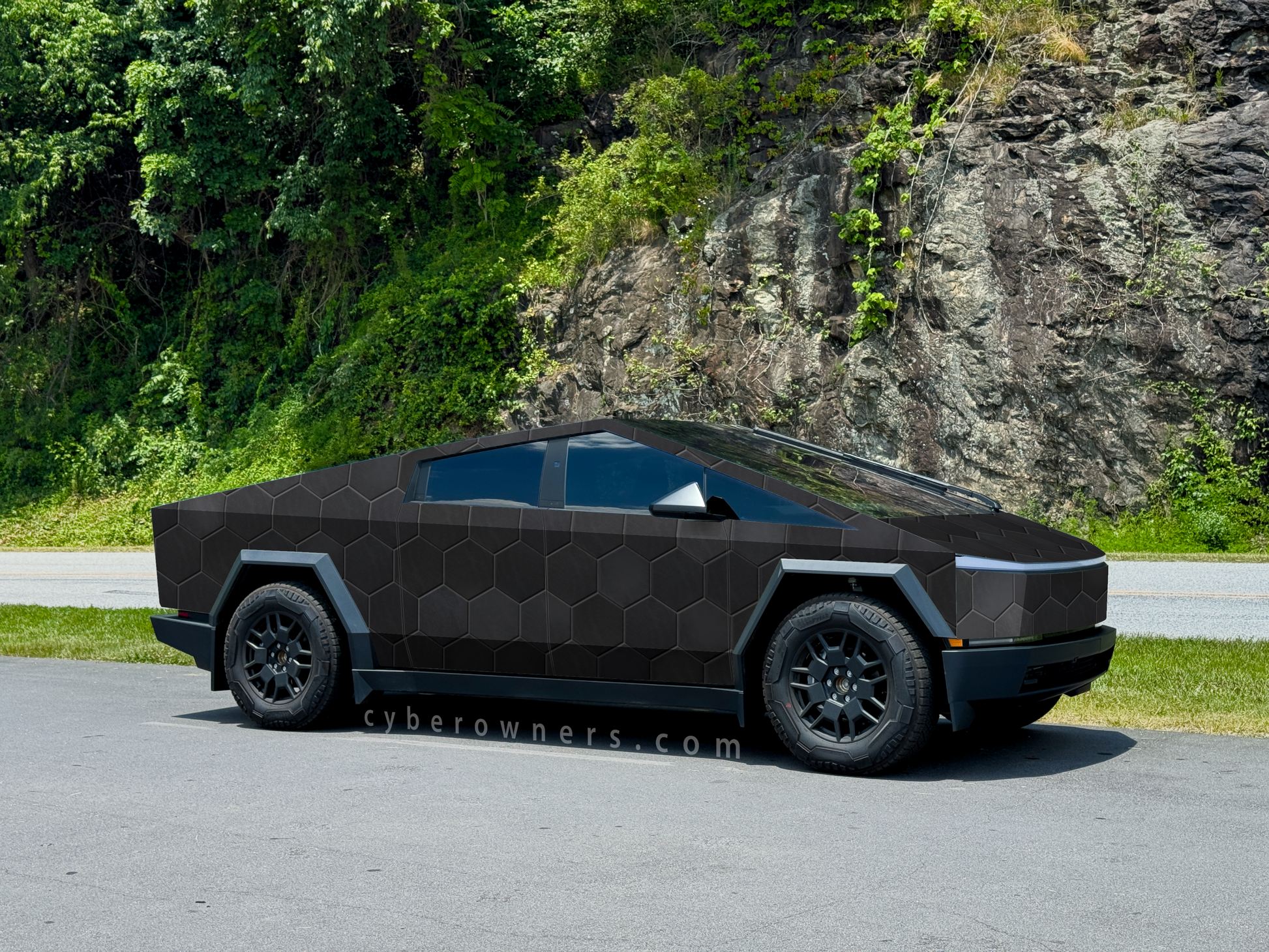 Wrap design for Tesla Cybertruck that looks like the heat shield tiles on Starship